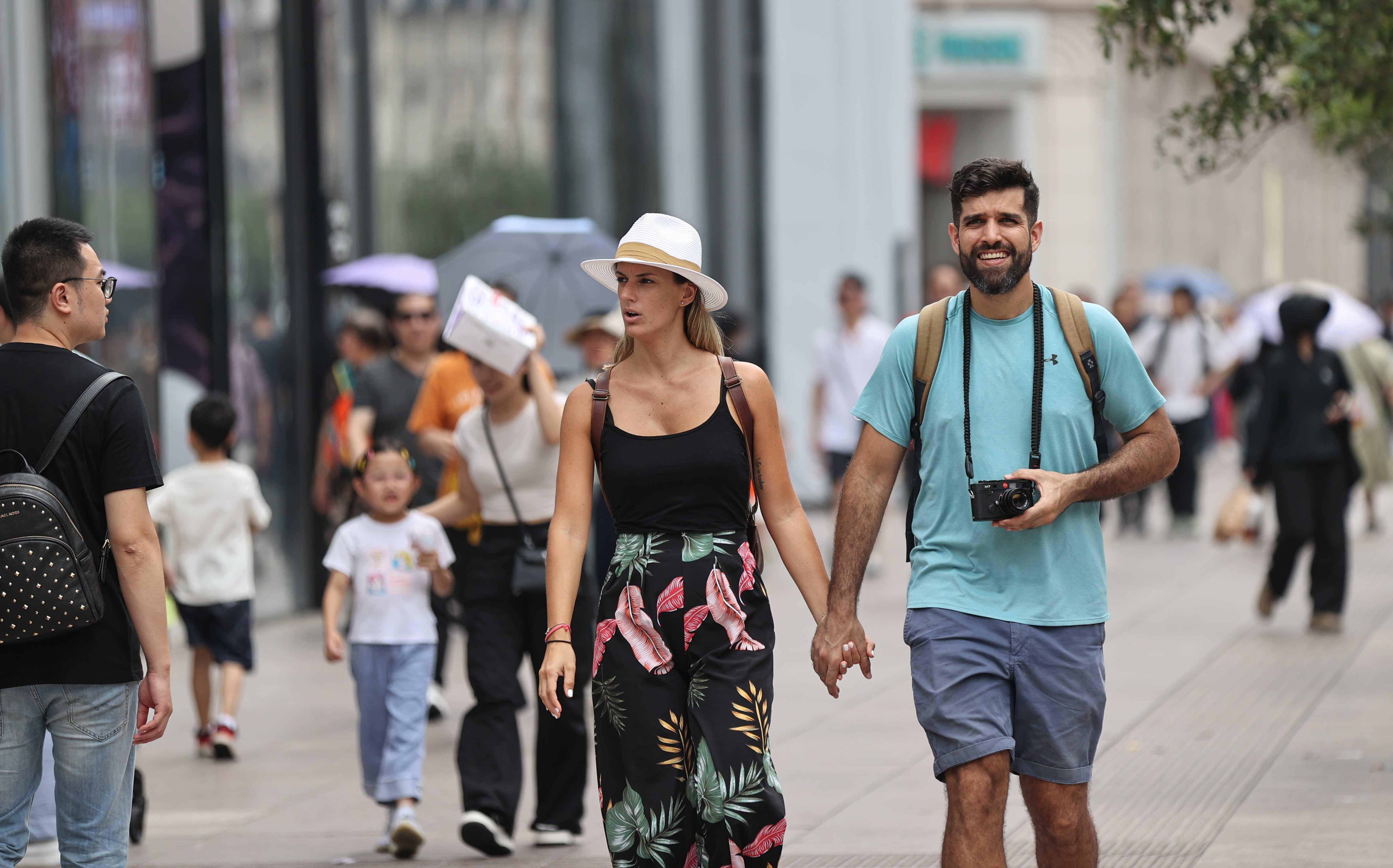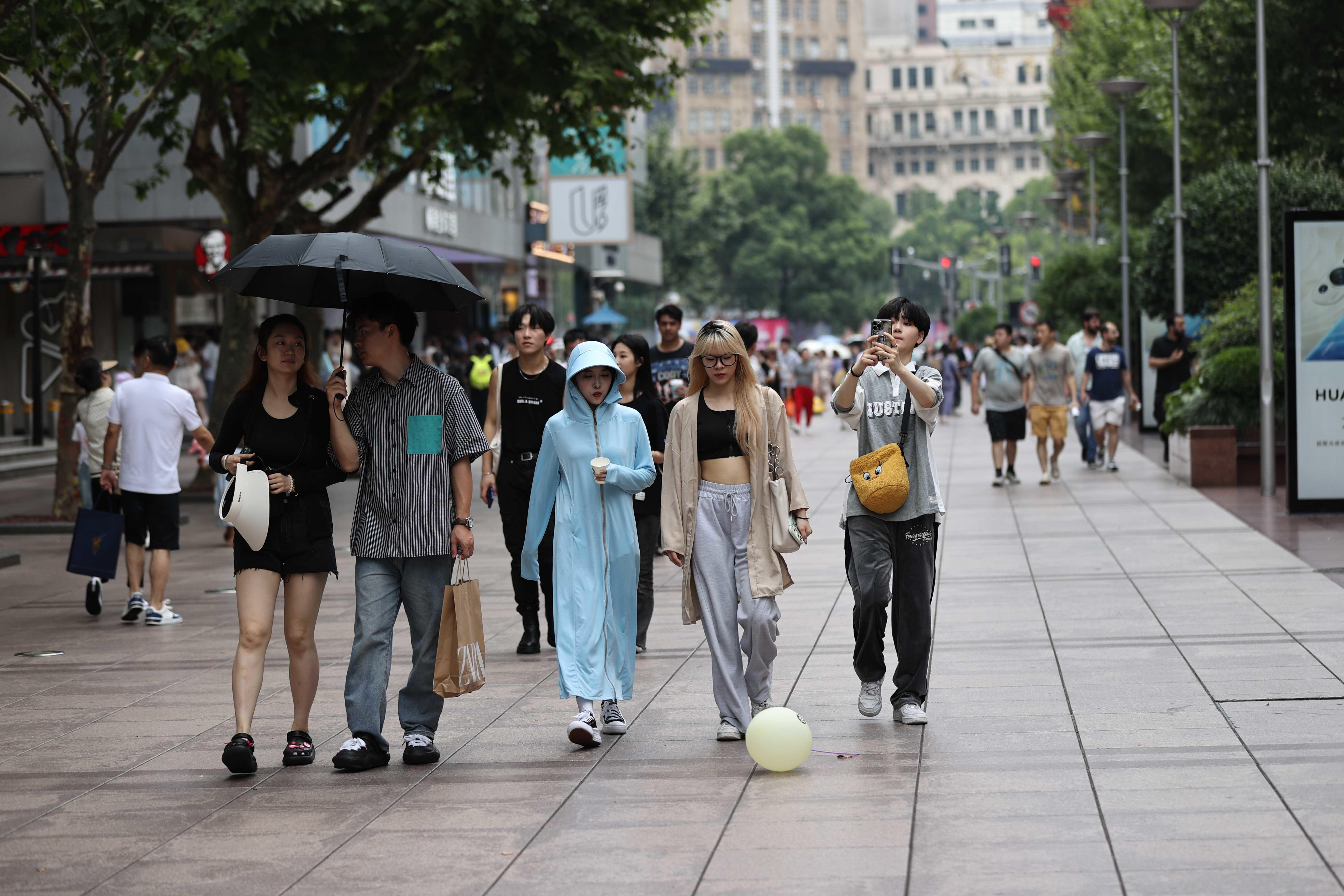 “南京东路步行街上防晒装备大比拼”