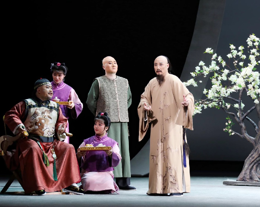 在全剧的尾声,“郑板桥”有一段长达10多分钟的唱腔,由“清板”“梳妆台”“大开口”“堆字大陆板”“道情”等多个曲牌组成,将郑板桥的一生感悟唱得酣畅淋漓。这不仅是一场听觉盛宴,更是唱得引人深思,引发关于人生的思考。