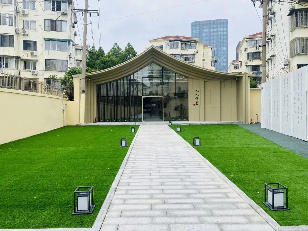 再看国定支路睦邻街区,这里从创智农园、睦邻门的点状项目,逐渐向街区范围扩散,形成了分布在国定支路两侧,由人人会客厅、人人讲堂、国定支路党建微花园、五角场街道综合为老服务中心等设施及空间共同组成的“15分钟社区生活圈”集群,充分体现了整体焕新的理念。