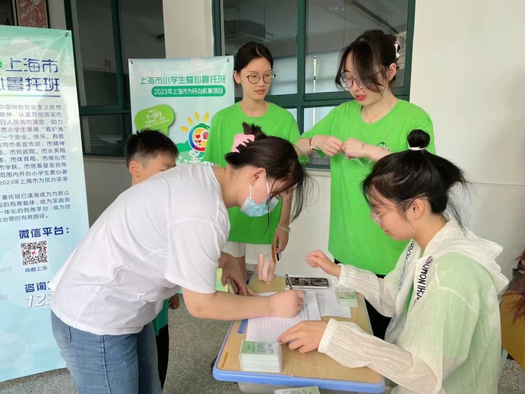 就读于上海师范大学的陶静怡,通过“青春奉贤”的微信公众号了解到“爱心暑托班”的志愿者招募需求,便第一时间报名。“其实前两年我就看到过暑托班志愿者的招募,但是时间有冲突就没有报名,今年我已经大三了想抓住最后一次机会来做志愿者。”
