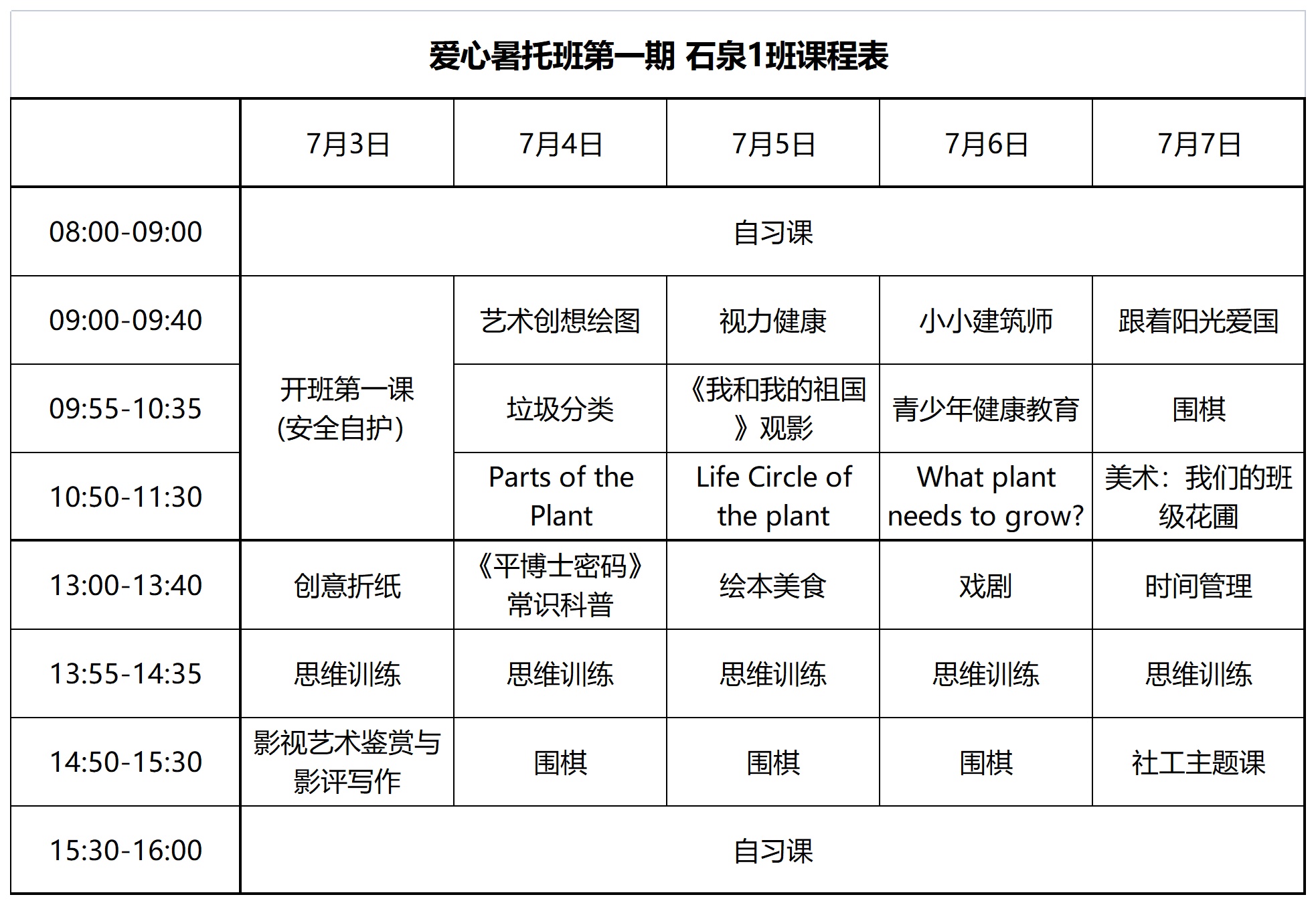 本次暑托班每班配备班主任1名、学生志愿者7名,从孩子进校、下课、活动、午餐一直到放学,他们将全天全程陪伴孩子们一起学习、一起玩耍,让温馨的关爱与陪伴随时随地围绕在孩子们身边。