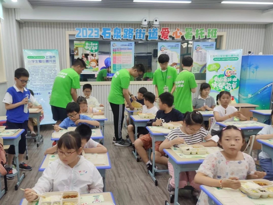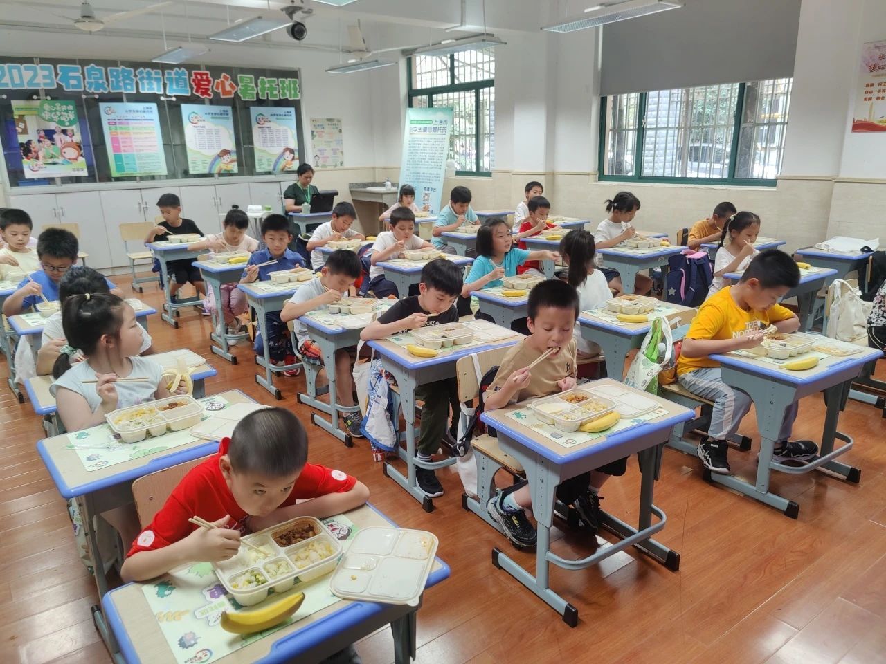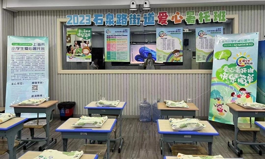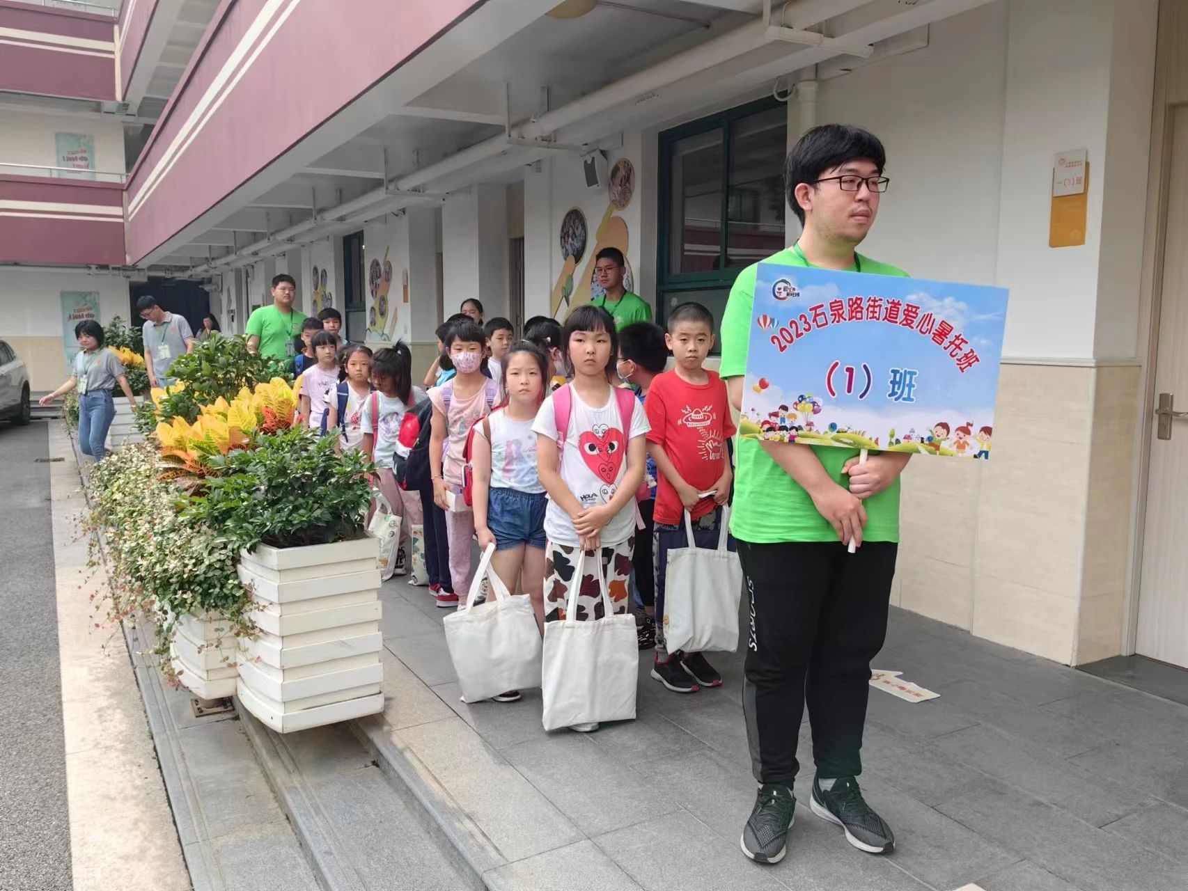 近日,孩子们在大人的陪同下,走进了石泉路街道小学生爱心暑托班,开启了开班后的学习、玩乐生活。