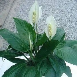 白鹤芋又被称为白掌,可以透过蒸散作用调节室内的温度和湿度,能有效净化空气中的挥发性有机物,如:酒精、丙酮、三氯乙烯、苯、甲苯、一氧化氯、臭氧等。其中尤其是针对臭氧的净化率特别高,摆放在厨房瓦斯旁,可以净化空气,去除做饭时的味道、油烟以及挥发物质。