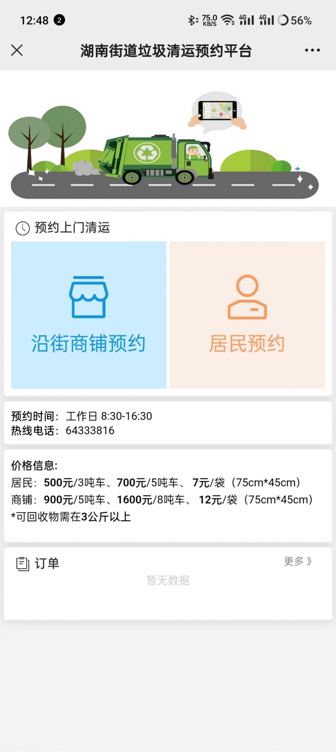 如今,“湖南街道沿街商铺垃圾分类收运预约小程序”已经迭代升级为“湖南街道垃圾清运预约平台”,升级后的小程序不仅覆盖了商户,也面向了全域居民。