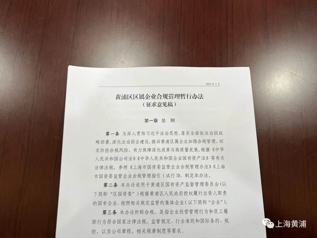 除了制定《黄浦区区属企业合规管理暂行办法(征求意见稿)》,区国资委还加强了与区司法局等单位的工作协同,对企业进行合规指导,深化依法合规管理意识,推动企业全面构建合规管理体系。通过完善法治工作体系、聚焦专业法律服务、加强依法治企引导、优化法治培训机制等一系列实实在在的举措,进一步推动法治国企建设,发挥依法治企对区属企业深化改革、高质量发展的支撑保障作用,助推黄浦加快建立健全依法治企制度体系,护航企业发展更行稳致远。