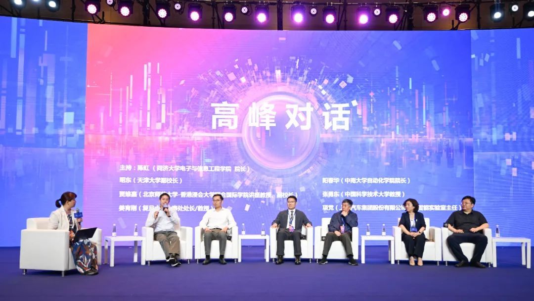 在论坛的高峰对话环节,天津大学副校长明东、北京师范大学-香港浸会大学联合国际学院副校长贾维嘉、复旦大学教授姜育刚、中南大学教授阳春华、中国科技大学教授张勇东、上汽集团人工智能实验室主任项党围绕主题,结合各自实践与思考,展开了高峰对话,同济大学电子与信息工程学院院长陈虹主持高峰对话。