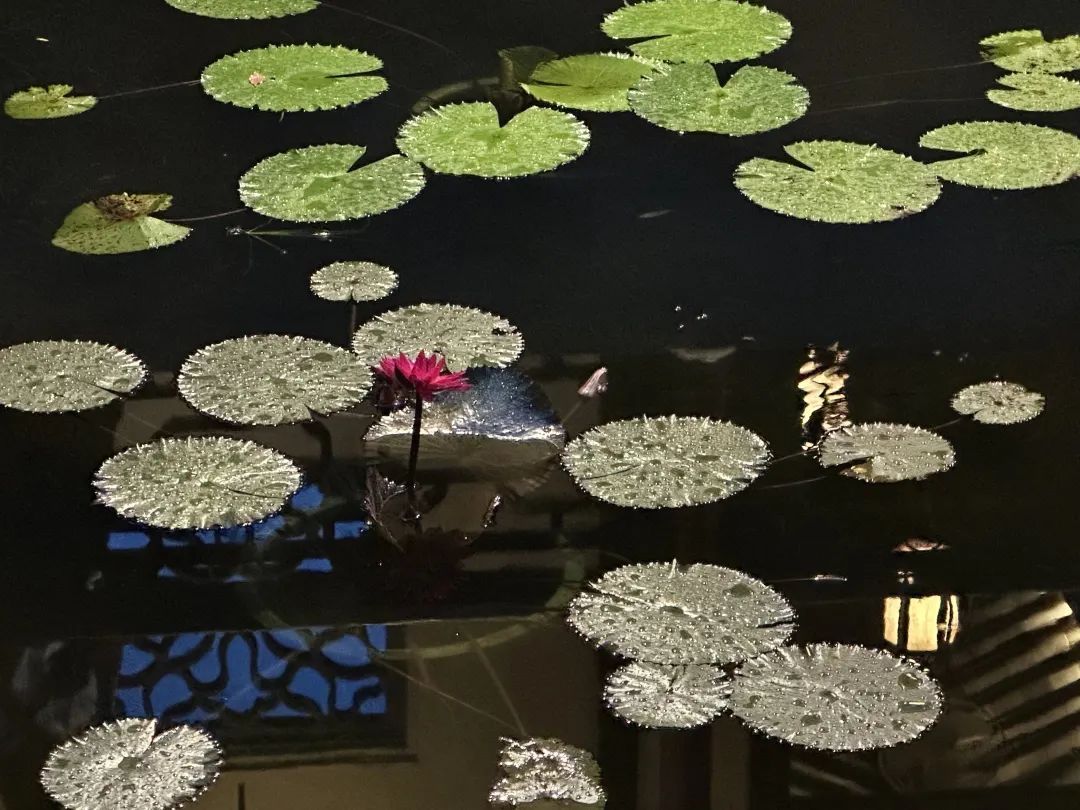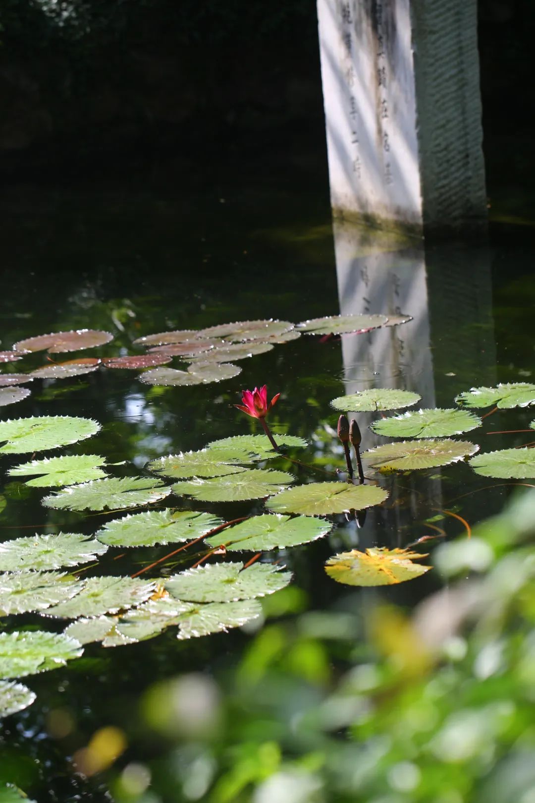 仲夏的夜晚,蝉声悦耳,古猗园鸳鸯厅水域的夜开睡莲悄悄绽放了,宛如睡美人般在夜色中苏醒过来,伸展着婀娜的身姿,正如诗中所写——“红粉伊人枕波眠,风掀碧裙任缠绵”,给静谧的夜晚增添了一抹神秘的色彩。