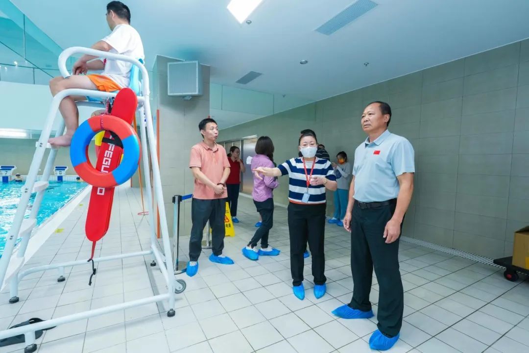 市民畅享水中乐,安全开放乐无忧。随着申城气温不断升高,不少市民选择以游泳的方式来消暑,7月5日上午,市体育局一级巡视员赵光圣一行赴上海游泳馆、威尔仕襄阳北路店、素凯泰酒店游泳池,开展夏季游泳场所安全开放检查工作。