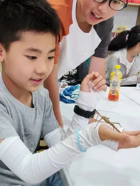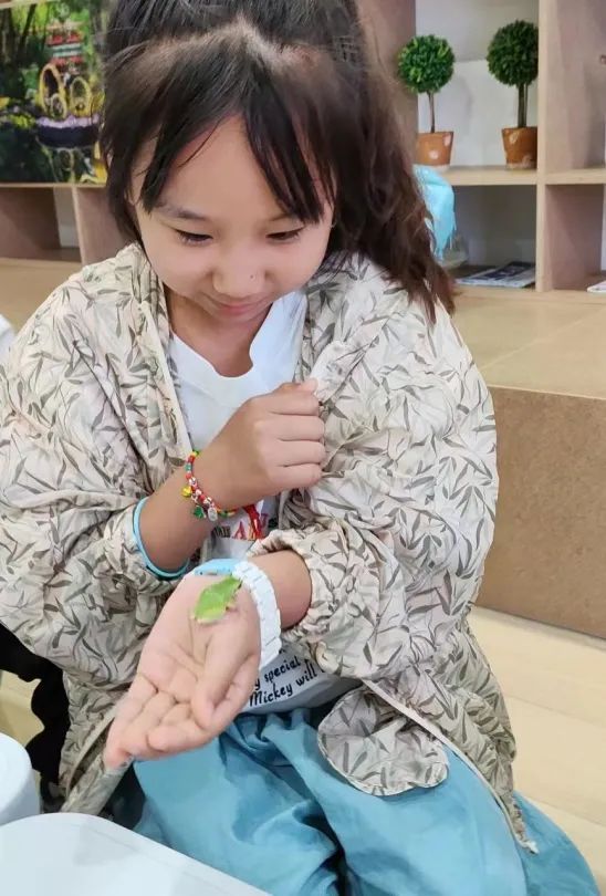 竹节虫、蝴蝶幼虫、螳螂、雨蛙......许多孩子在观察触摸中,克服了对昆虫的恐惧,并渐渐喜欢上这些可爱的小动物。