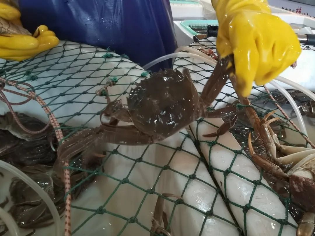 在青浦三元河菜市场内,记者看到水产摊主特地设置“六月黄”专区,按不同规格摆放,一只只青褐色的螃蟹张牙舞爪,在盆里来回横爬。相比于成熟期的大闸蟹,刚进入青年期的“六月黄”个头并不算大,但一个个鲜活的螃蟹,着实令人垂涎欲滴,时不时有市民前来询价并挑上几只尝尝鲜。“我每个星期要买一些回去,炒毛豆吃,非常鲜美!”市民李先生说。