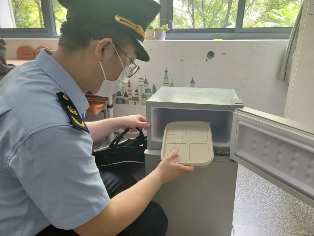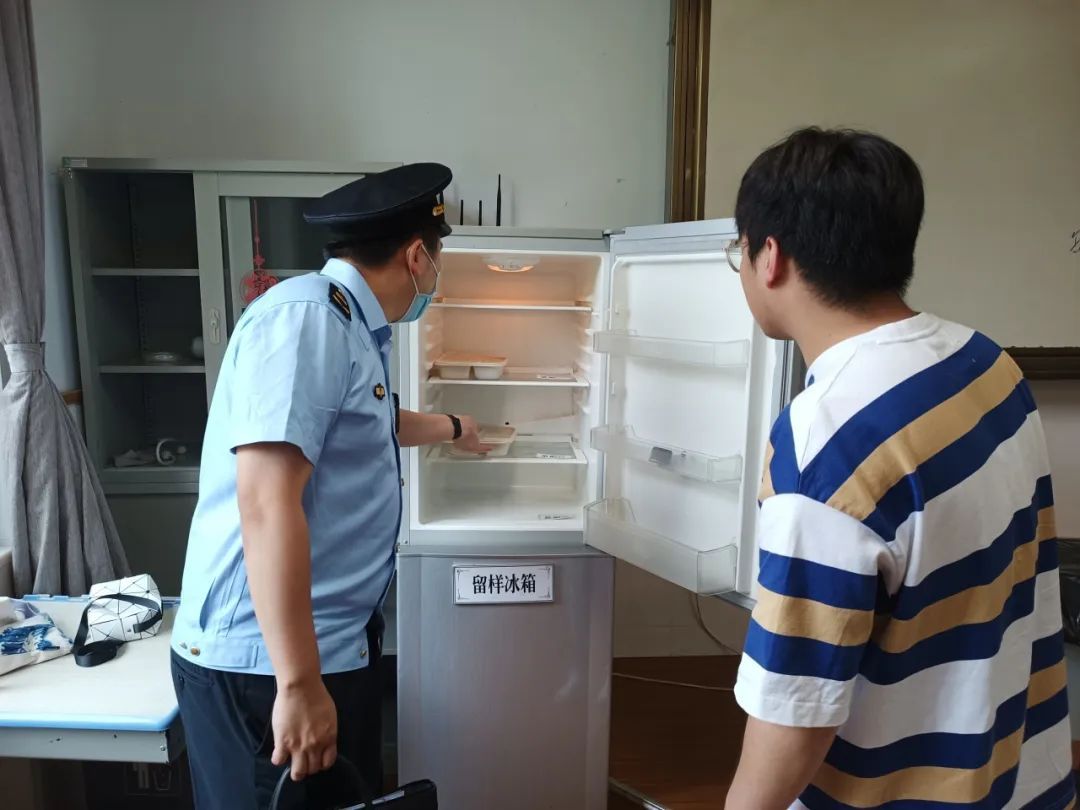 检查暑托班留样冰箱,要求午餐留样并保存不少于48小时,确保一旦发现食品安全问题,可以立即追溯和查找问题。