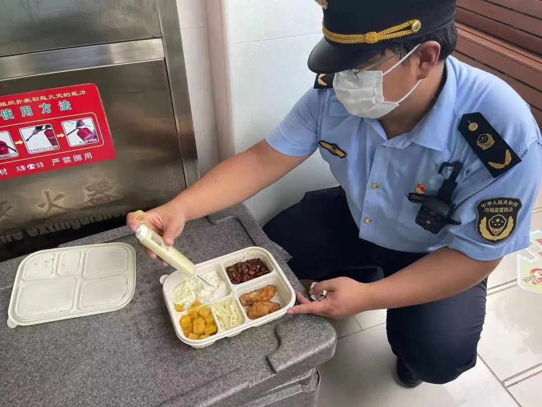 普陀区共设10个“爱心暑托班”,1000余名学生参与,每天中午由具备资质的盒饭供应单位统一向各点位配送盒饭。截至目前,普陀区市场监管局已出动执法人员30人次,对全区10家暑托班进行了全覆盖检查,检查情况良好,同时利用食品安全快检技术筛查风险,共检测15件次,100%合格。