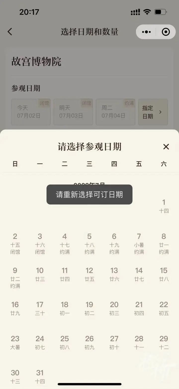 宋先生原本订好了下周与孩子一起去北京的机票,可无奈一直抢不到故宫博物院的门票。