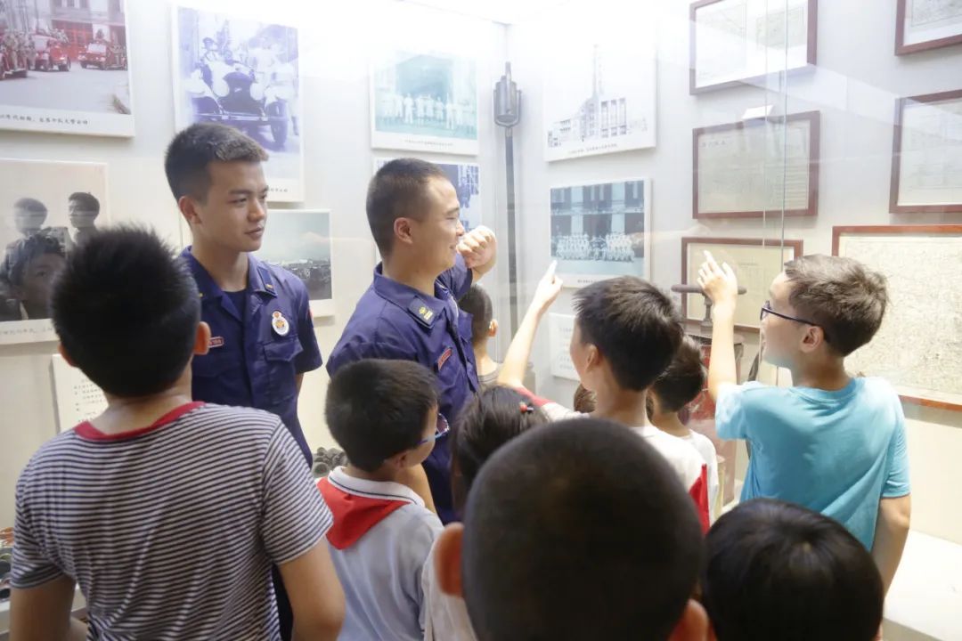 宜昌路消防队原址为宜昌路救火会大楼。当孩子们推开队史馆大门,走过队史走廊、实物展厅和荣誉室,参观馆藏近1000件实物、图片、文献,仿佛近百年宜昌消防人所经历的水与火的洗礼、生与死的考验就在眼前。当消防员叔叔冒着烈日从训练塔上飞速而下,矫健的身姿和一往无前的勇气让孩子们为之惊叹。