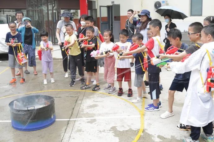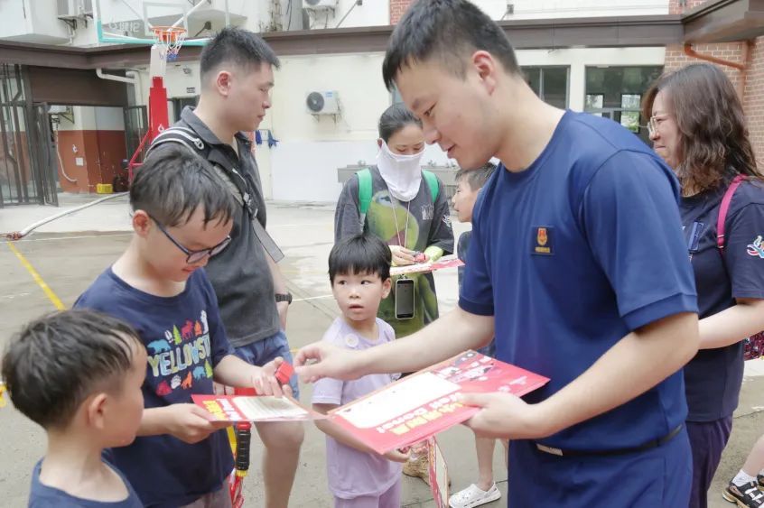 消防员叔叔带领着孩子们进行了消防水枪操作及灭火实操演练,让孩子们过一把“消防瘾”,加深对消防安全的认识和理解。消防员还给参与此次活动的孩子们颁发了“小小消防员”证书,鼓励他们做积极向上、不畏困难、勇往直前的新时代好少年,将“赴汤蹈火、追求卓越”的上海消防精神传承下去。