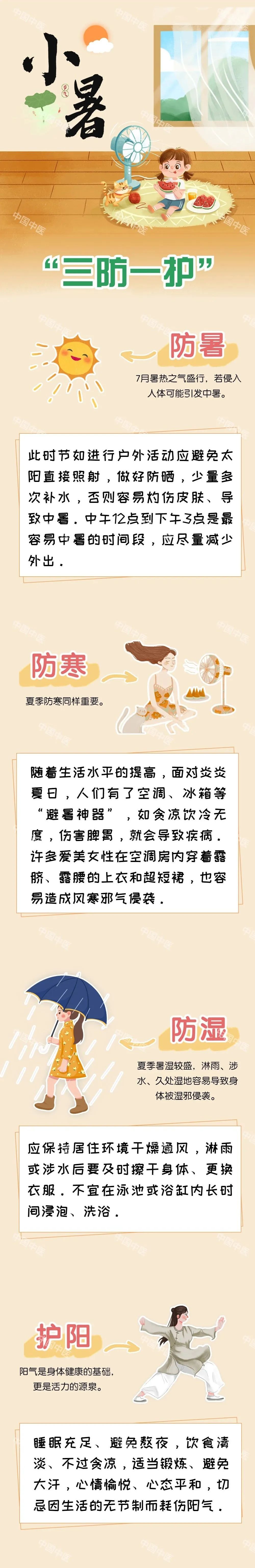 小暑大暑,上蒸下煮,明天即将迎来小暑节气。这时候阳热下降,氤氲熏蒸,水气上腾,湿气充斥,“湿热交蒸”到达顶点。暑湿之邪极易在人体肌肤腠理开泄之际,乘虚由外入内,阻遏气机,耗津灼液,损伤阳气,引发中暑、心脑血管疾病及肠道传染病等。此时如何养生?中医为大家划重点!