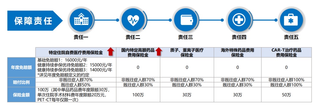 • 健康持续参保优待免赔额2:连续参保2022版、2023版沪惠保且保障期间未发生赔付(获赔金额=0元)的参保人群年度免赔额为15000元/年。
