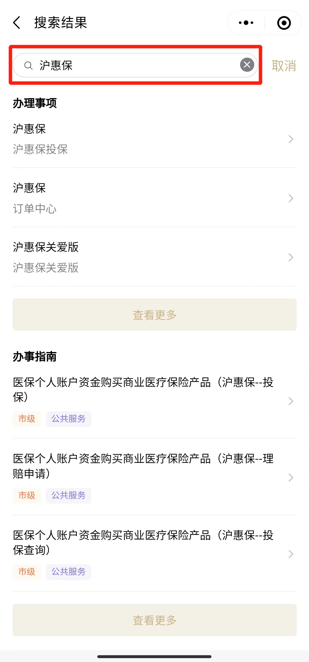 打开“随申办”微信小程序、“随申办”APP或“随申办”支付宝小程序,首页搜索“沪惠保”,即可进入投保页面。