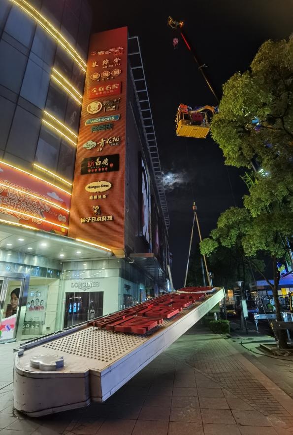 7月5日00:50,随着标有“东方商厦”字样的大型侧招安全落地,标志着奉贤区最后一块大型侧招安全拆除,也意味着今年违法户外广告(招牌)设施专项整治任务进入了冲刺阶段。