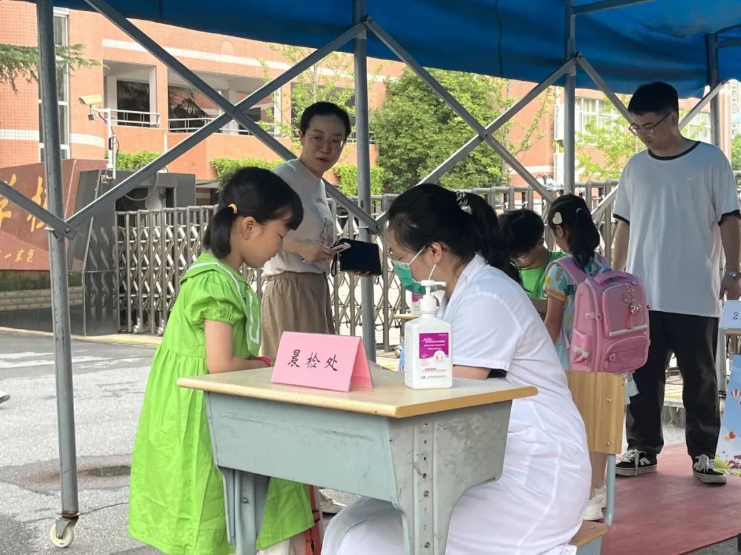 为保障暑托班学生的安全,真如镇街道将学生的安全作为第一要务,积极整合多方资源,通过门口安全员、接送卡、每日晨检、到校签到等多元手段,保障孩子们每一天的到校生活都安全有序。街道社区卫生服务中心医务人员仔细地为孩子们进行晨检,大学生志愿者则做好到校签到。