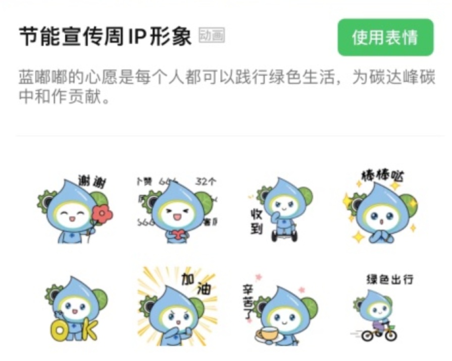 值得一提的是,蓝嘟嘟专属表情包也于日前上线。头顶绿叶和科技齿轮,脚踏“双碳”风火轮,去年夏天,属于上海市节能宣传周的IP形象首次亮相,该形象一经发布,受到了广大市民的喜爱。今年,组委会特别推出蓝嘟嘟个人专属表情包和手办盲盒。通过微信搜索“节能宣传周IP形象”,选择“表情”栏点击进入添加,即可拥有同款表情包。