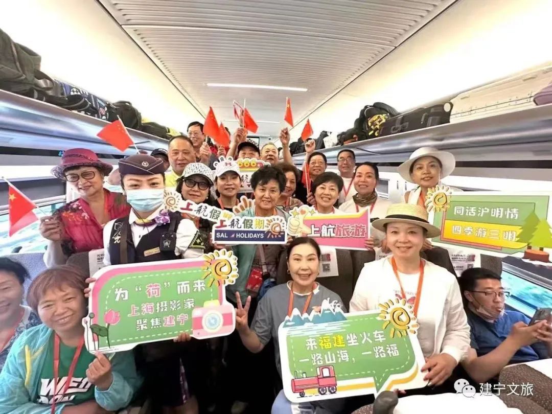三明市建宁县是上海虹口区的结对县,有“建莲之乡”的美誉,全县种植了5万亩荷花。县内有WRCA世界纪录官方认证的“世界最大梯田莲海”坪上梯田莲海、谢马苏梯田莲海、修竹荷苑、大源村等共20个赏荷基地。在基地里,游客不仅能近距离赏荷,还可以吃莲子、品全莲宴。