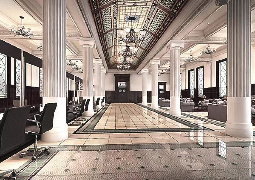 上世纪二十年代“中一大楼”的历史照片,当时中一信托公司的营业大厅