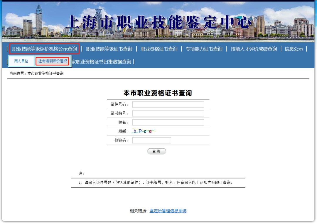 点击“职业技能等级证书查询”,输入证件号码(包括其他证件)、证书编号、姓名其中任意两项,输入验证码,即可查询经本市核发的职业技能等级证书信息。