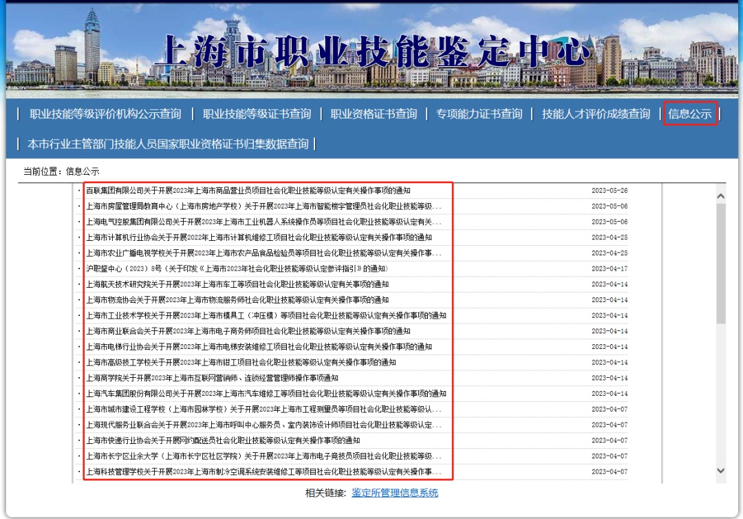点击“信息公示”,可查看各社会评价机构发布的年度认定通知。
