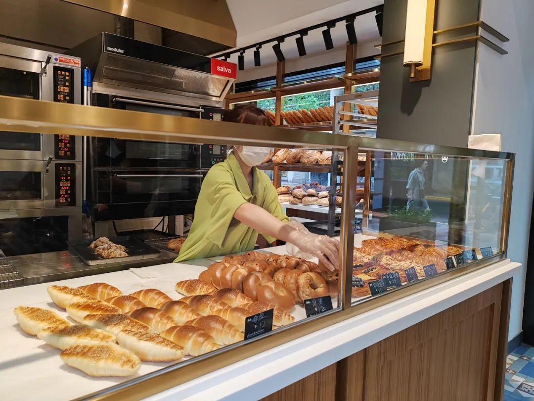 店里每日售卖的面包、蛋糕约30多种,早上、中午均有面包新鲜出炉,悠长的麦香、酵母香和烤香的味道给愚园路增添一份烟火气。
