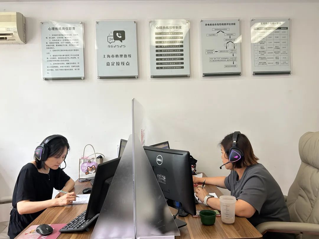 7月6日,记者在上海市心理热线嘉定接线点看到,心理咨询师正在通过电话与市民交流。嘉定区精神卫生中心培训教育科科长卢艳告诉记者,该热线日均接线量约60个,咨询者主要是因为学业、工作、感情、家庭中出现问题,产生焦虑、抑郁等情绪后来寻求帮助。