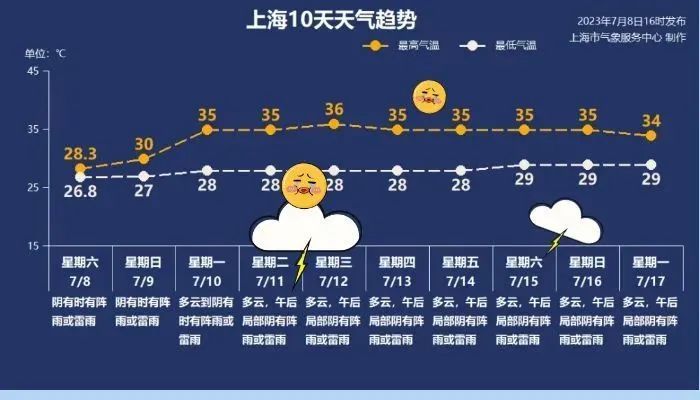 下周天气形势发生变化,主雨带北抬,上海以多云天气为主,多午后阵雨或雷雨天气。