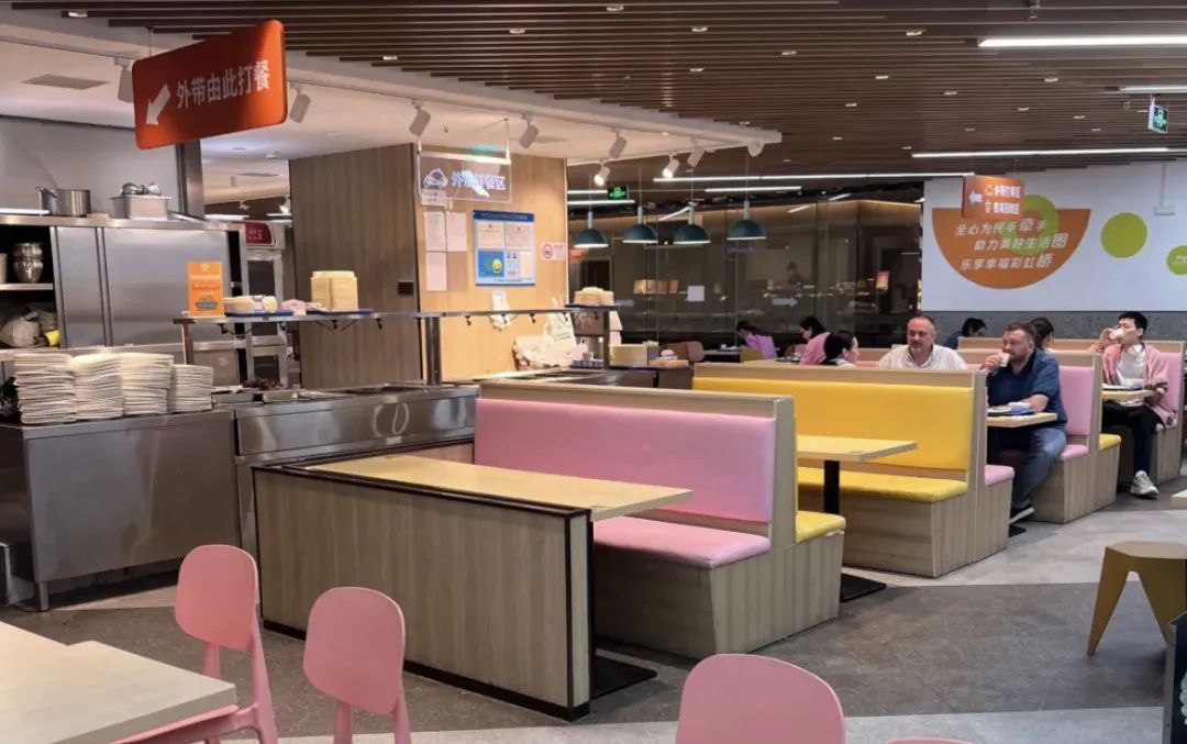 于2022年开业的小Q饭堂采用“称重计量自助餐”的经营模式,让顾客的用餐有了更多选择。饭堂设有150个客座,营造了宽敞舒适的用餐环境。在这里用餐,每个菜品都没有标注价格,而是统一按照每50克4.28元收取,荤素同价。这样的自助式取餐模式,大大丰富了顾客能够吃到的菜品种类。