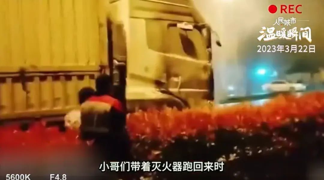 就在此时,周边的快递小哥、保安大叔,拿着灭火器从四面八方赶来。据顺丰小哥丁贺喜回忆,当时他正开车将货物运往站点。路过时看到一辆大货车,车头冒烟,驾驶员已经下车。