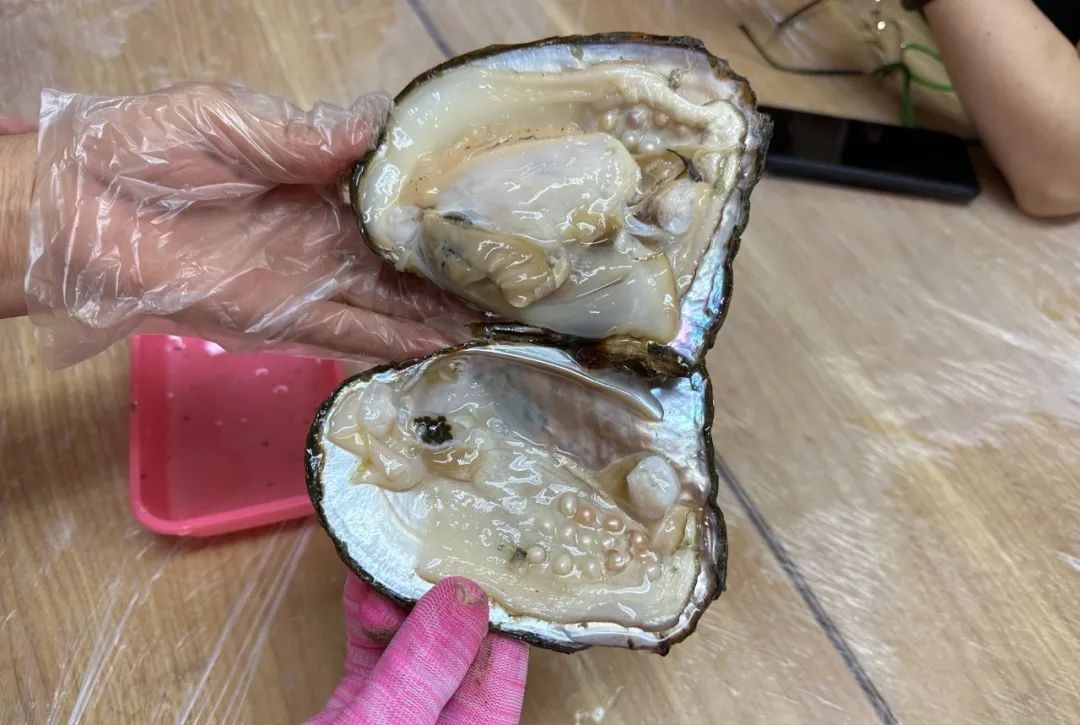 活动伊始,老师向大家介绍珍珠的产地、种类、形成过程,以及选择珍珠的标准、珍珠饰品在日常生活应如何保养等知识。接着,老师为大家分发珍珠蚌以及开蚌工具,并手把手指导大家如何开蚌取珠、洗珠抛光。大家跟随着老师的步骤,撬蚌、取珠、清洗、打磨……经过努力,一颗颗饱满圆润的珍珠呈现在面前。
