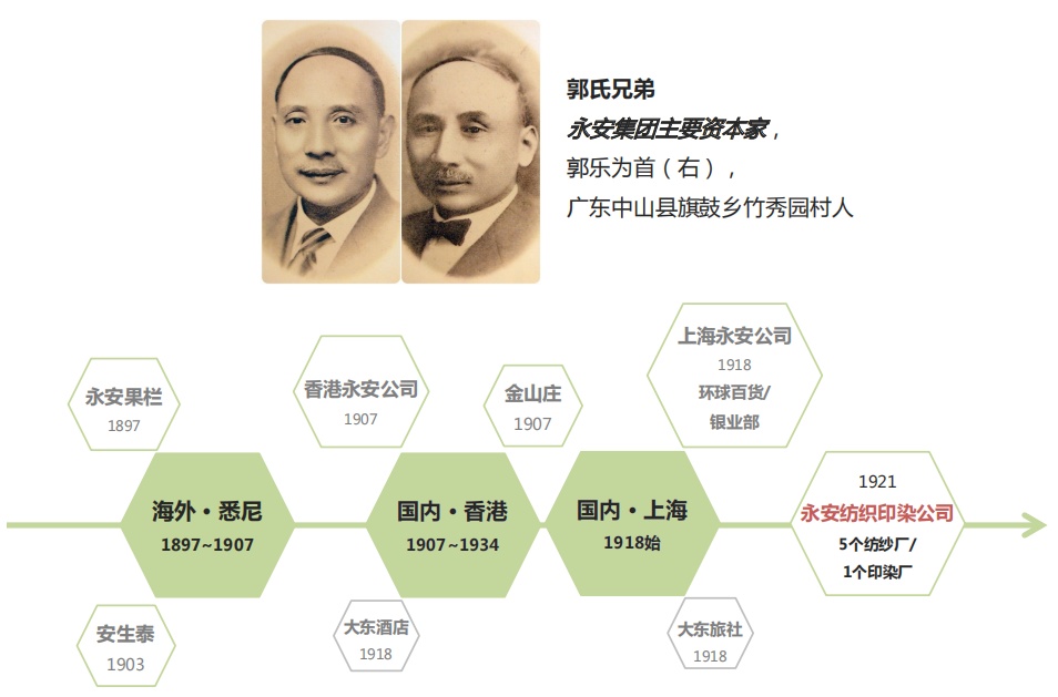 永安,是一个牵动国人百年记忆的工商业品牌,也是近代中国民族企业的缩影。这不能不提到在悉尼经营水果批发生意的华侨商人郭乐和郭泉兄弟。擅长于进出口贸易的郭氏兄弟,于1907年在香港创办了永安公司。