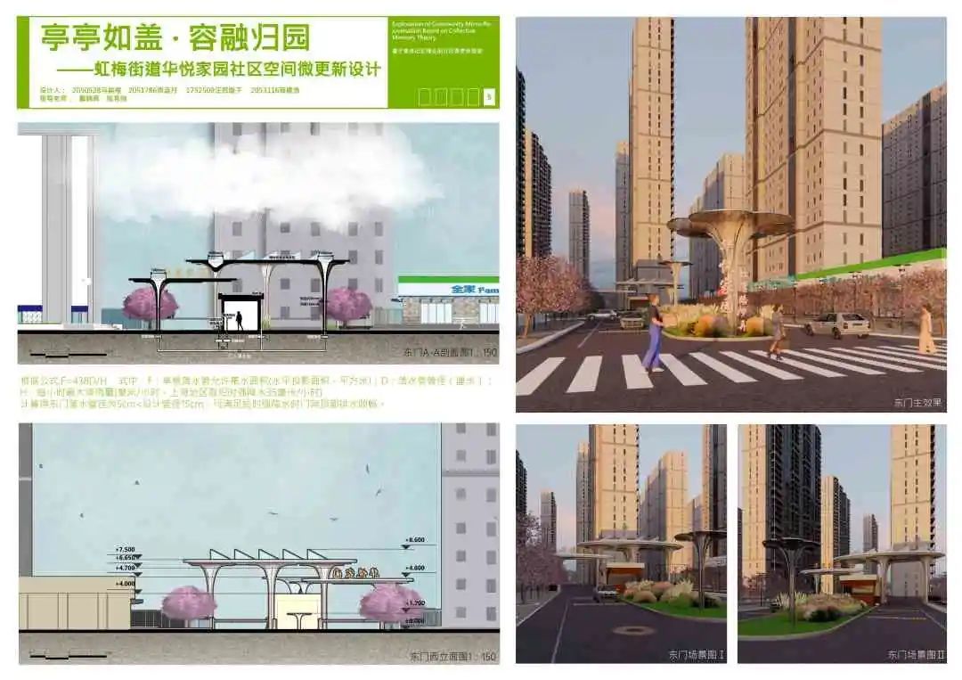 华悦家园正在创建上海市低碳环保示范社区,同学们都认识到,应把应用低碳环保技术作为小区门户的一个重要特色。所以,在门户节点更新设计中,如何从功能、造型、文化寓意、低碳技术应用等多维度进行综合考量,提出富有特色的的设计创意,是华悦家园小组同学面临的主要挑战。