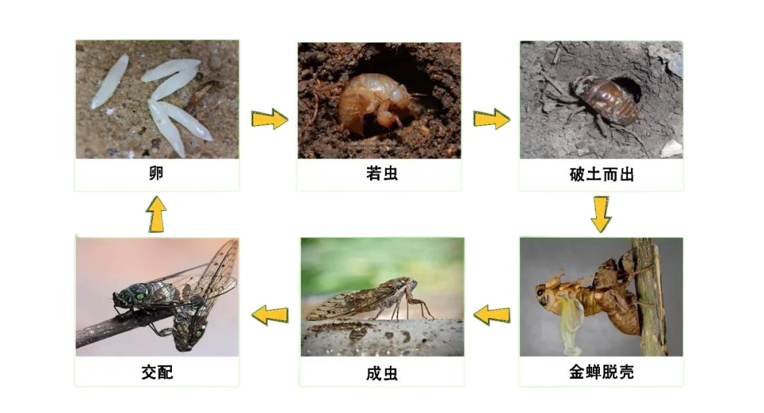 蝉的一生可以分为三个阶段,卵-若虫-成虫。