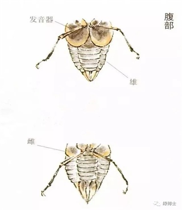 雄蝉的发音器在腹基部,像蒙上了一层鼓膜的大鼓,我们听到的尖锐响亮的声音是雄蝉以每秒上百次的频率,不断震动位于腹部的两片鼓状膜产生的,雌蝉的腹部“乐器”构造不完全,不能发声,所以雌蝉不会叫。