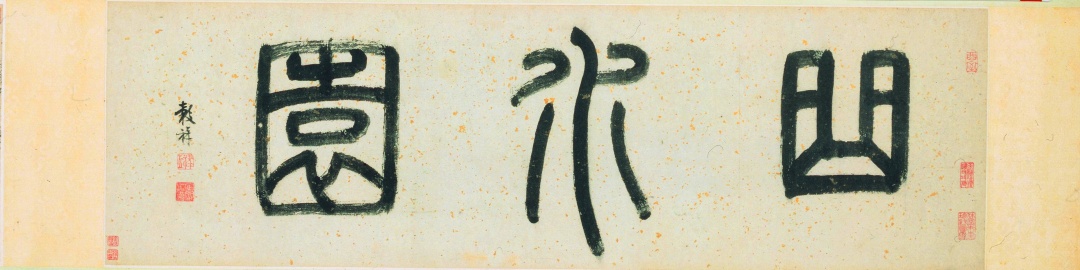 右方画有一畴平岸,近河筑茅屋三间,四围茂木藂林,长松挺秀,修竹深密。隔河下方有坡石葭苇,古柏阴翳。画幅中部为一大片空濛的水域,河中坐落几处汀屿,点缀柳竹屋舍,至卷末微露坡岸的一隅。画面形象地再现了黄浦江畔曲水绕村的景色。画家所称“松竹秀郁,殊为胜绝“,正是赞美其地居水滨,有自然朴质之美,而这与主人“守拙心弥敦”的淡泊人格是互为表里的。图中正屋内一人踞坐草褥展卷而读,自然是曲水园主人董宜阳。董宜阳因痛失爱妻,决意不再远行,在沙港河边筑“紫冈草堂”静心读书,攻于学问。晚年家道中落,仍修筑曲水园,手植紫藤树,保持诗性生活品质。