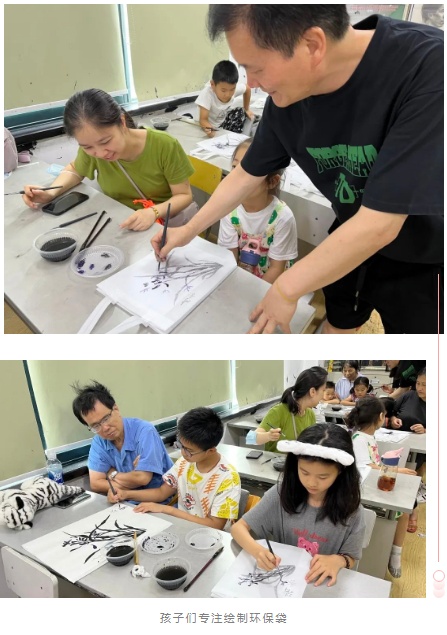 孩子们在老师的带领下绘制属于自己的环保袋,大家挥动手中画笔,妙笔生“花”,在白色的帆布袋上手绘出美丽的图案,栩栩如生的植物在他们的画笔下活灵活现。