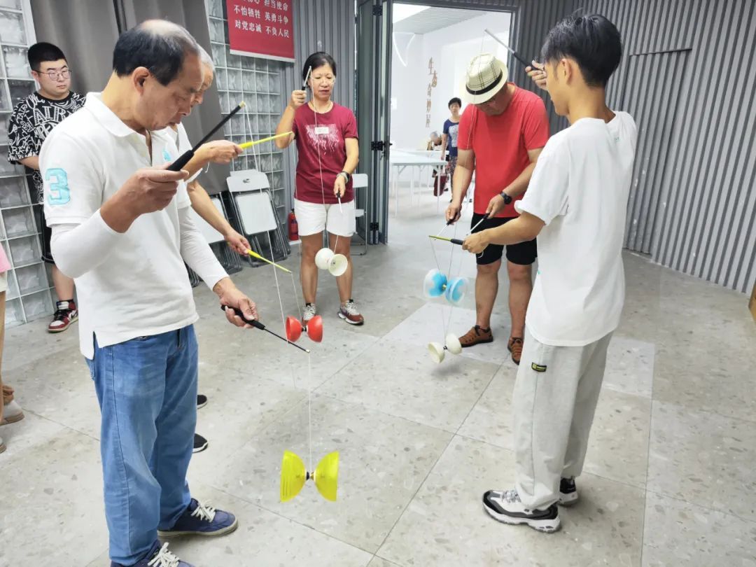 活动现场,非遗空竹魅力尽展,老中小三代齐上阵。孩子们从长辈手中接力文化传承;青年们承上启下,互相切磋;老一辈不遗余力地传授技巧,追忆过往。小小空竹,只需一起一落,便是千年流传,代代相承的民族精神。