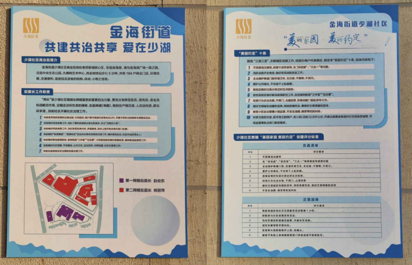 金海街道少湖社区坐落于“上海之鱼”湖畔,是一个集纯住宅、类住宅、商业体于一体的社区复合体。商铺作为少湖社区的重要一环,转租、转经营频繁,流动性较大,商户经营理念和居民居住理念的差异易产生矛盾。