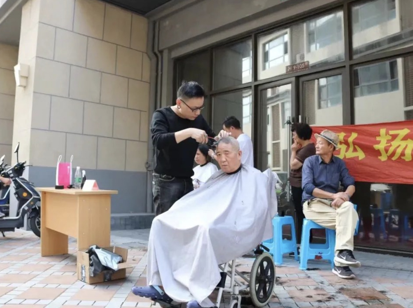 “1+1+N”的“N”即指社区内的N个志愿服务团队。党支部通过开展综合性志愿服务和专题活动,充分挖掘商铺和居民中的优质资源,广泛凝聚社会共识,推动“商社”联心联谊。现已组建“星星之火”“好药师”“剪爱”“为民服务、人宠和谐”等6支商铺志愿团队,为居民提供日常血压血糖测量、70岁以上老人免费理发、文明养宠知识普及等服务。