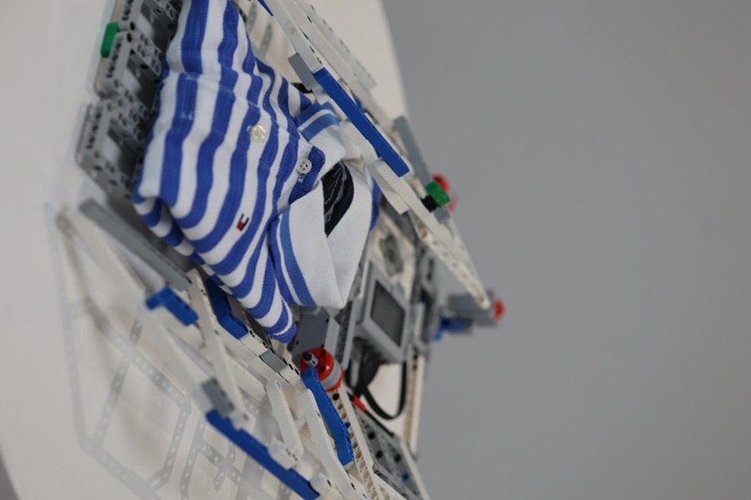 除了这款男女通用的版本,“叠叠不休”队的郭新瑞和戴若凡还用乐高、编程技术、马达、电池打造了一款解放双手的叠衣神器,人们只需把衣服平铺在上面,然后按一下开始按钮,20秒内,衣服便自动叠好了。赖玥初高兴地告诉记者:“我们的这些发明都让家长们体验过,他们既惊喜又兴奋,觉得这些创意很神奇!”