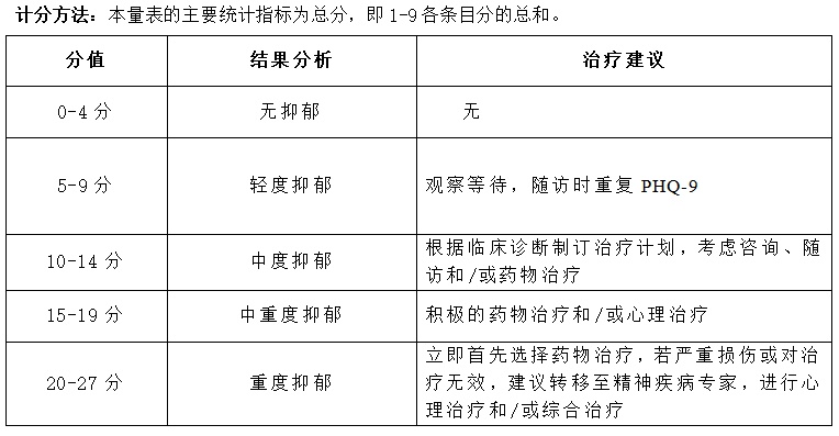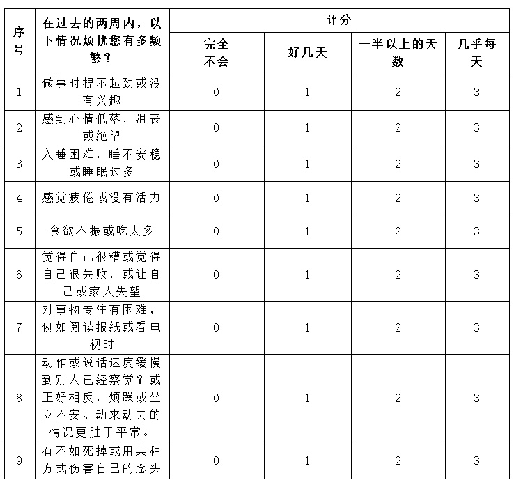 这里有一份测评表可供您判断。(PHQ-9病人健康调查问卷)