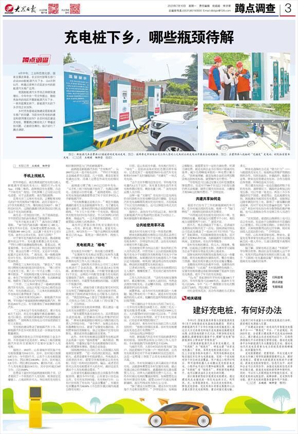 国网潍坊供电公司的工作人员张强认为因地制宜很重要。“在一些经济比较发达,规模较大,或者是建有乡村旅游景点、外来流动人员较多的乡村,需要尽快规划建设公共充电桩;而在一些相对比较封闭、偏远,或者老百姓对公共充电桩需求不大的乡村,最好还是先满足个人充电桩建设需求。”