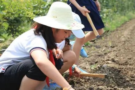 学生和家长共同参与果蔬采摘和花卉养护,参观现代化农场,定制夏日食谱,了解农作物的季节特性和生长规律。