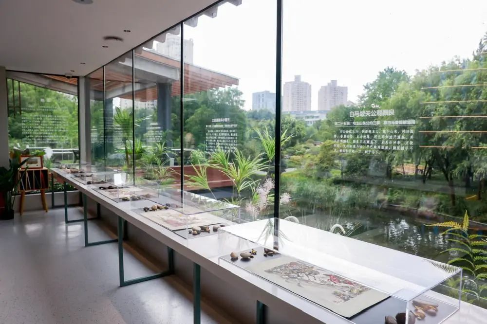 此外,在书店的两层楼空间里,藏着不少惊喜。从旋转楼梯登上二楼,可以望见水景的大面积玻璃窗下的展柜里,正在展出盛鹤年《三国演义》连环画展。低头在展柜里细细端详,抬头就能在玻璃窗上读到连环画的介绍。如果从一楼的后楼梯登上二楼,可以邂逅难得一见的毕加索麻胶版画展,从活动室的窗户往外看,正是和平公园版的“莫奈花园”。往楼下看,有三个圆柱形透明空间,小圆桌环绕着白色沙发,这是刊茶社特别设计的“茶罐”空间,三五好友在此聚会,是相当惬意的环境。