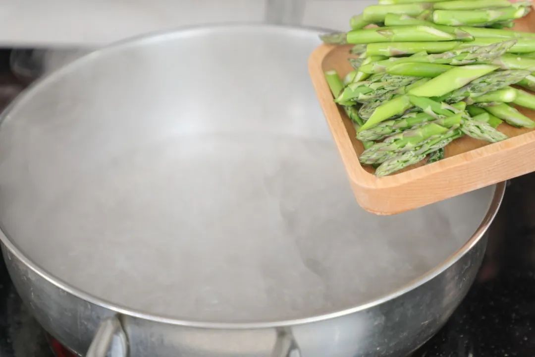 2.百合去头尾洗净待用,芦笋去老根老皮后洗净切段,焯水捞出。